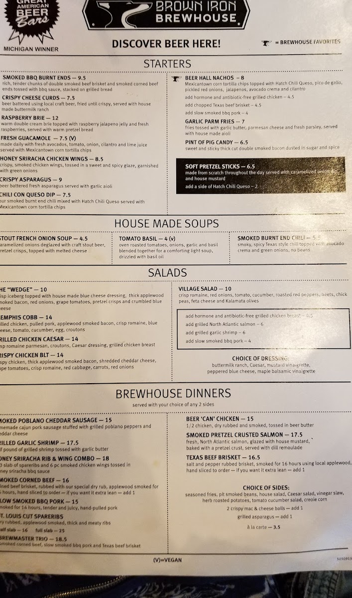 Welcome to Brown Iron Brewhouse Washington Township, a vibrant brewery and restaurant located at 57695 Van Dyke Ave, where exceptional food meets a dynamic selection of craft beers and ciders. The menu showcases a delightful array of choices that cater to diverse tastes and dietary needs, including gluten-free options and flavorful dishes that everyone can enjoy.